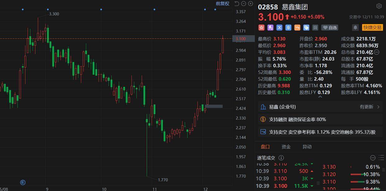 易鑫集团(02858.HK)不绝上升行情,现在涨超5%,近3日连涨超22%,近期更是走出回转行情,最新市值210亿港元。音信上,近期易鑫集团迎来诸多利好音信。12月9日,港交所认真推出其首只港股指数——香港交游所科技100指数(港交所科技100),易鑫集团得胜入选为该指数身分股;日前公司晓示与精真估(腾讯的从属公司)签订续订二手车奇迹战术勾搭契约。续订契约自2026年1月1日起奏效,为期三年。廉正证券发布研报称,公司当作第三方汽车金融领军企业,一方面公司二手车战术成效权贵、高订价二手车业务为公司事迹提供复古,瞻望下半年公司事迹不绝高增态势;另一方面公司坚握分成响应鼓动、高股息特质显然,赐与“犀利保举”评级。
